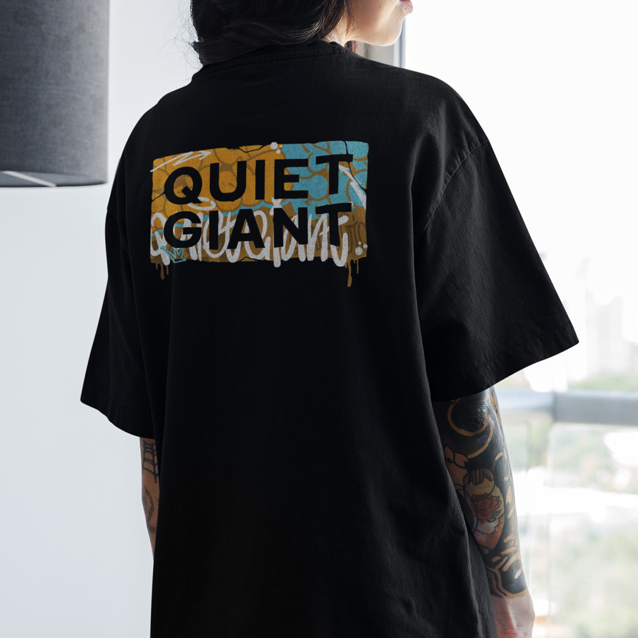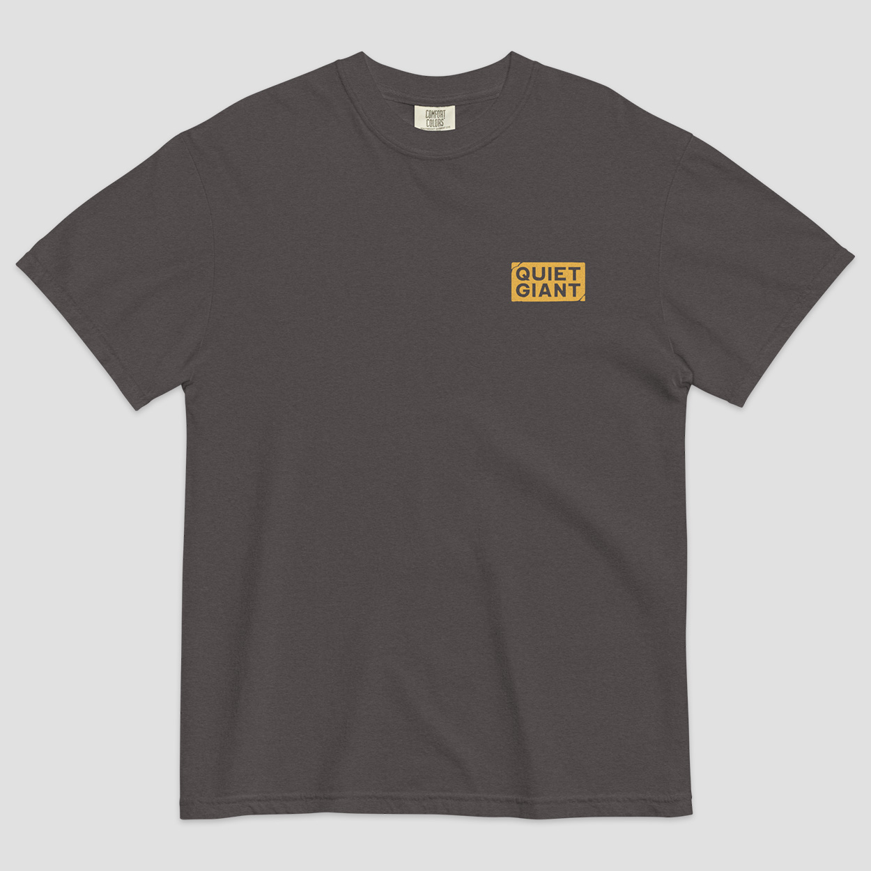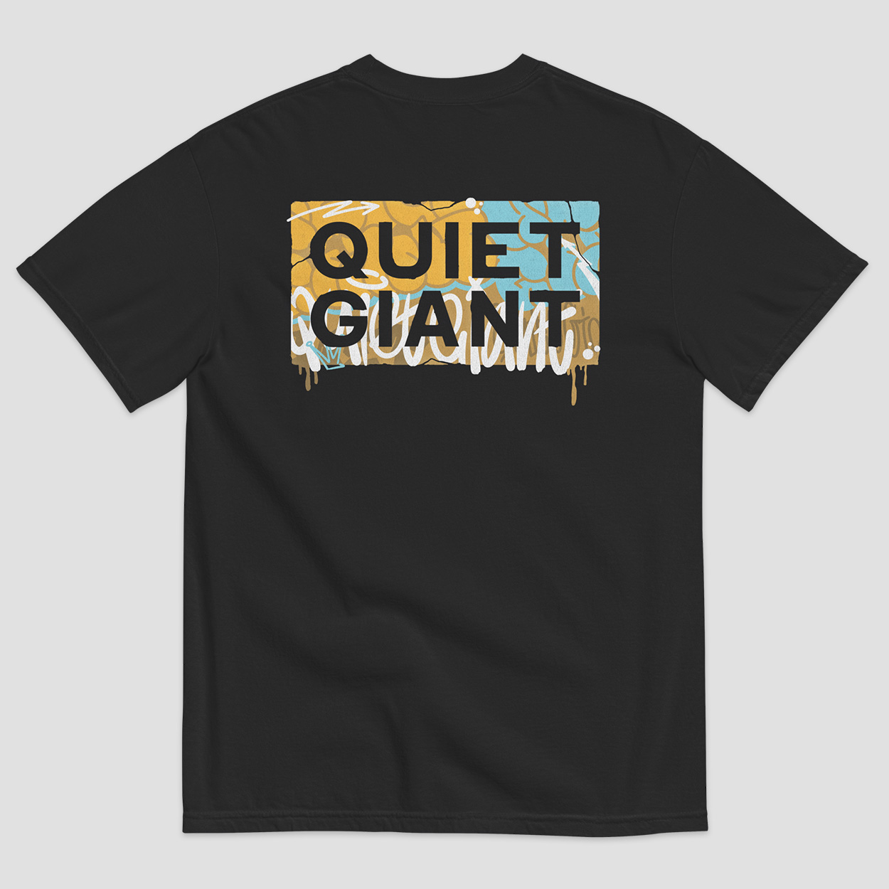 Quiet Giant tagged block on back, Quiet Giant wordmark on front.